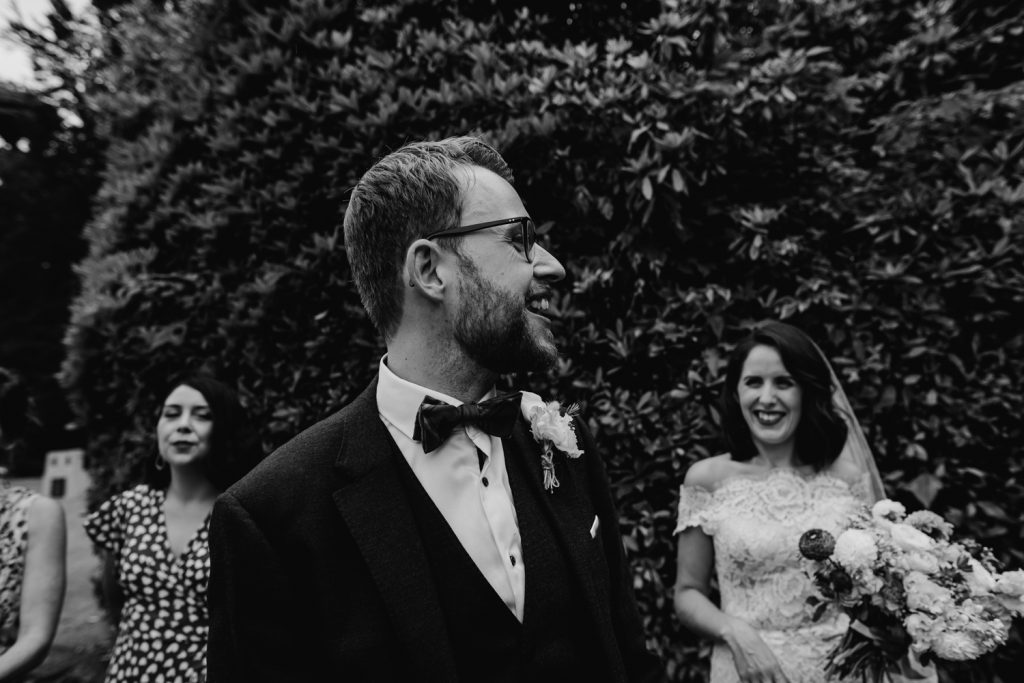 I LOVE first looks! Such an incredible moment before your ceremony to simply pause together. The big reveal with no one watching, ok, yes I am also there but I keep well away so you both have this moment together. First looks are perfect for you both to take that first look together with no eyes watching you. Maybe nerves of walking down the aisle with all eyes on you! This helps relax you both and you both have this very emotional moment together